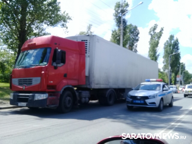 В Саратове произошло очередное ДТП. На улице Шехурдина в фуру сзади врезалась «Лада Калина». Образовалась пробка.