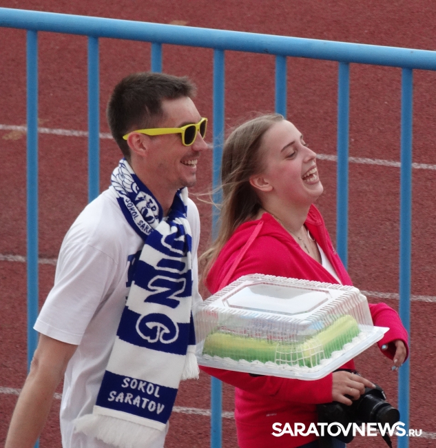 В перерыве поединка между саратовцами и «Химиком» из Новомосковска (Тульская область) один из любителей футбола сделал предложение любимой, и она согласилась выйти за него замуж. После финального свистка команда тепло попрощалась с почитателями, которые преподнесли ей большой торт с фотографией начинавшего сезон-2017/18 состава. Отдельного трофея удостоится капитан «Сокола» Евгений Дудиков – ему был вручен кубок как лучшему игроку сезона.