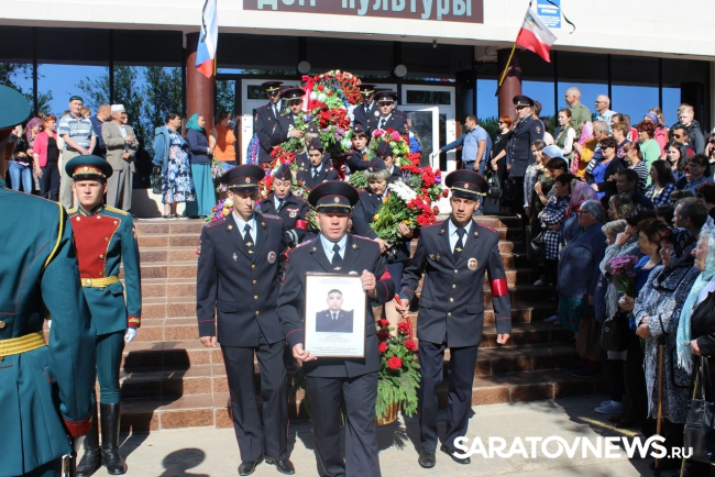 Напомним, в субботу при исполнении служебного долга в Северо-Кавказском регионе погибли два саратовских полицейских Кайрат Рахметов и Владимир Горсков.Вчера в селе Нижняя Банновка в Красноармейском районе состоялась официальная церемония прощания со старшим сержантом полиции Владимиром Горсковым.