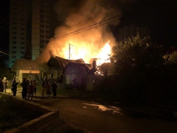 В эти минуты в центре Саратова около городского парка культуры и отдыха полыхают частные дома. Об этом сообщили очевидцы происшествия.