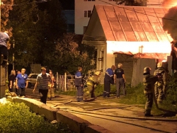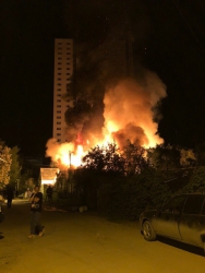По словам очевидцев, на месте происшествия работают около 15 пожарных, у которых через небольшие промежутки времени заканчивается вода.