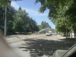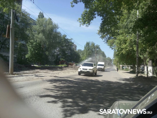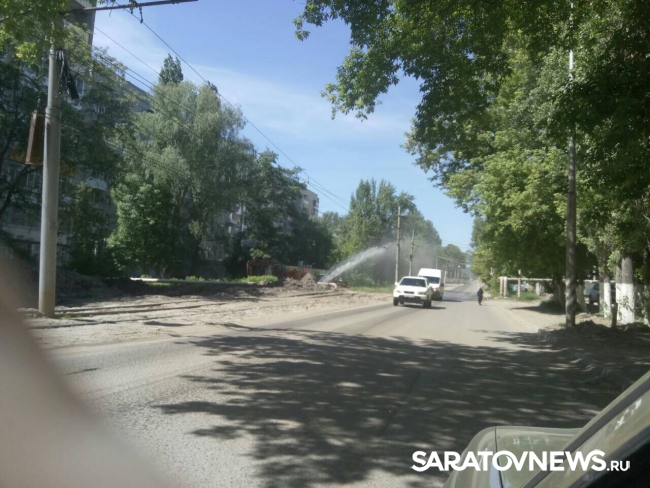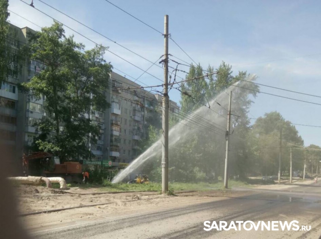 В Саратове на улице Огородной произошел порыв водоводных сетей. На месте ведутся технические работы, сотрудники коммунальных служб откачивают воду из выкопанной экскаватором ямы. Вода вырывается из подземной трубы на высоту опорного столба линии электропередач.