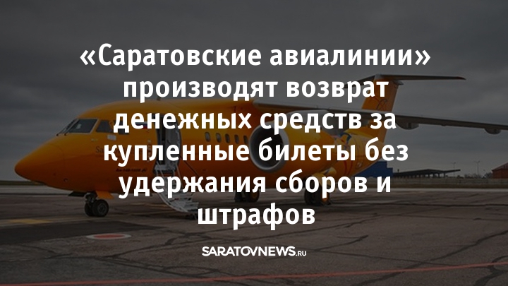 Авиакомпания «Саратовские авиалинии» производит возврат денежных средств за купленные билеты без удержания сборов и штрафов.