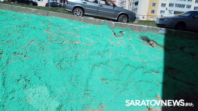 Очередное безумство коммунальных служб Саратова запечатлели на снимках жители города. В социальной сети "ВКонтакте" Светлана Кац опубликовала фото, на которых видно, как в Ленинском районе в поселке Солнечном, в 10-м микрорайоне, по адресу: ул. Академика Семенова, 11а, коммунальщики покрасили зеленой краской земляной склон во дворе дома. "Типа трава", пишет автор публикации.