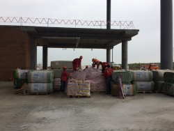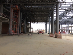 На первом этаже здания завершается устройство внутренних кирпичных перегородок в зоне регистрации пассажиров, обработки и выдачи багажа в секторе внутрироссийских и международных рейсов. Ведутся отделочные работы в этих помещениях. Ведется монтаж профилей для витражного остекления терминала.