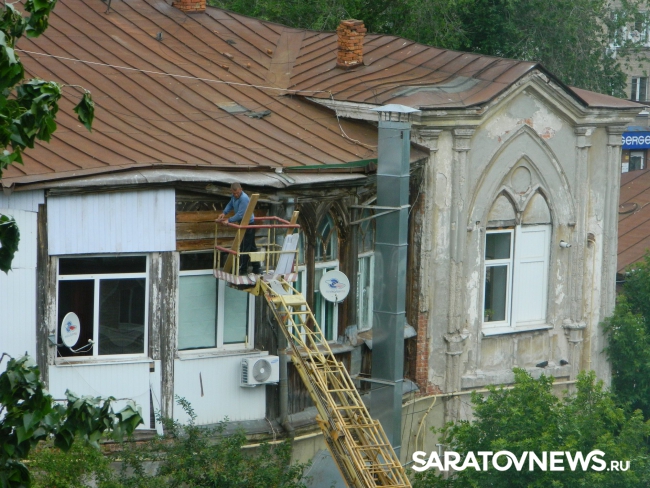 В Саратове жильцы старинной усадьбы на улице Чернышевского уничтожают исторический облик здания. Владельцы помещений решили самостоятельно провести ремонт объекта культурного наследия регионального значения.