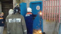На место приехали сотрудники областной службы спасения, которые демонтировали двери с помощью специального оборудования и вытащили мужчину. В настоящее время он передан медикам "скорой".