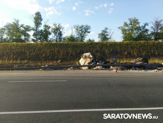 Вчера около 21.00 в Саратовской области на 419-м километре автотрассы Сызрань-Волгоград в кювет съехала и перевернулась фура. ДТП произошло между селами Чардым и Елшанка. В результате опрокидывания большегруз загорелся. Водители, ставшие очевидцами аварии, опубликовали сделанные снимки в социальных сетях.