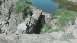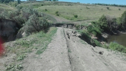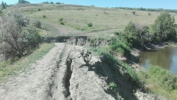 Переправа через пересыхающий пруд, которая востребована не только среди жителей села Синенькие, но и дачников, обрушилась в этом году еще после схода снега.