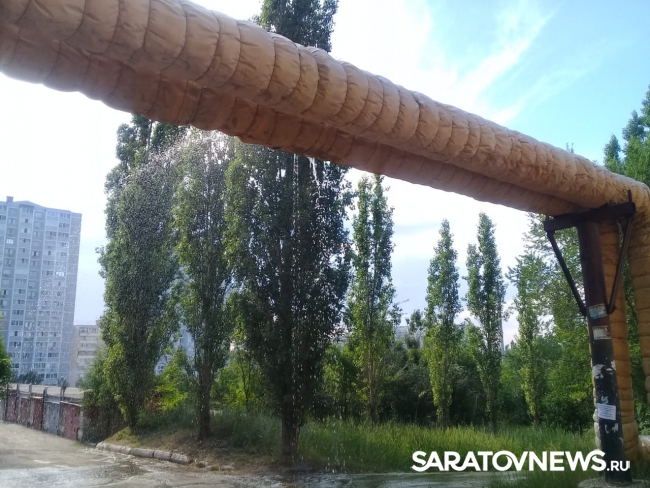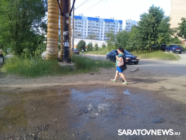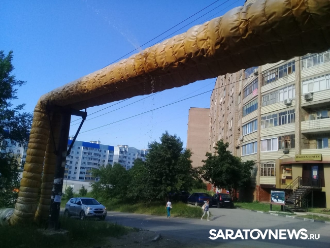 В Ленинском районе Саратова произошла коммунальная авария. На улице Чехова прорвало обернутую утеплителем трубу, расположенную над тротуаром и проезжей частью. Образовавшаяся под ней лужа мешает передвигаться пешеходам. Об этом сообщают читатели SaratovNews.
