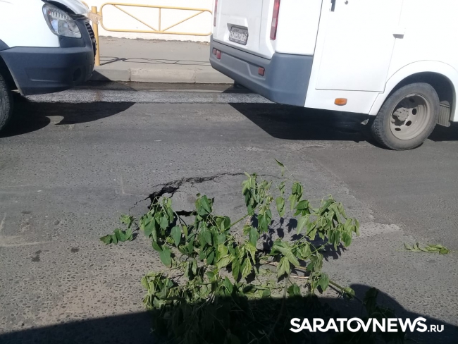 Прохожие догадались воткнуть в яму ветки, чтобы водители не угробили свои автомобили. Учитывая, что на мосту Саратов – Энгельс сейчас зафиксировано две аварии, дорога на Предмостовую площадь стоит практически без движения.