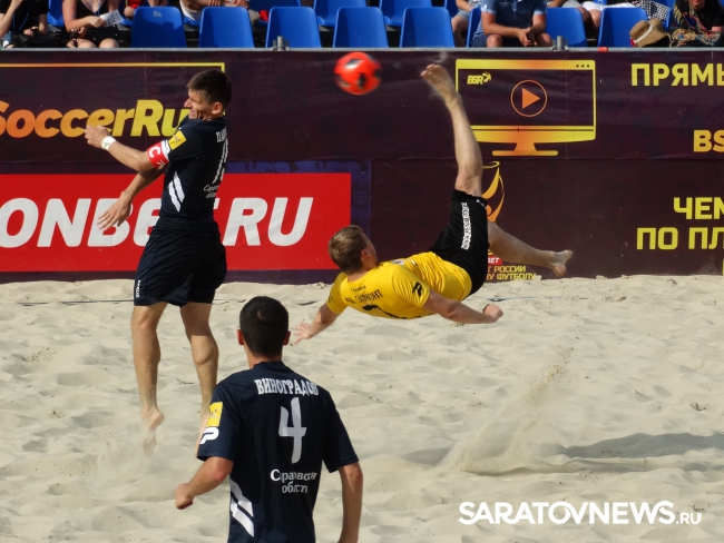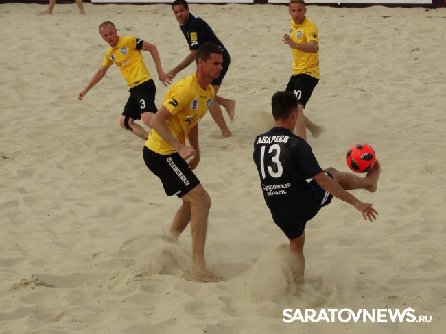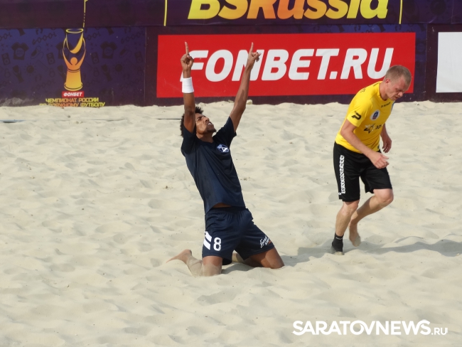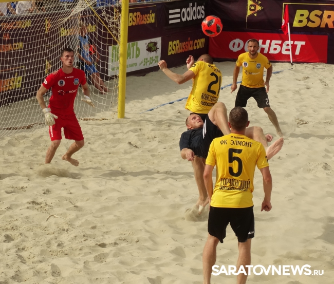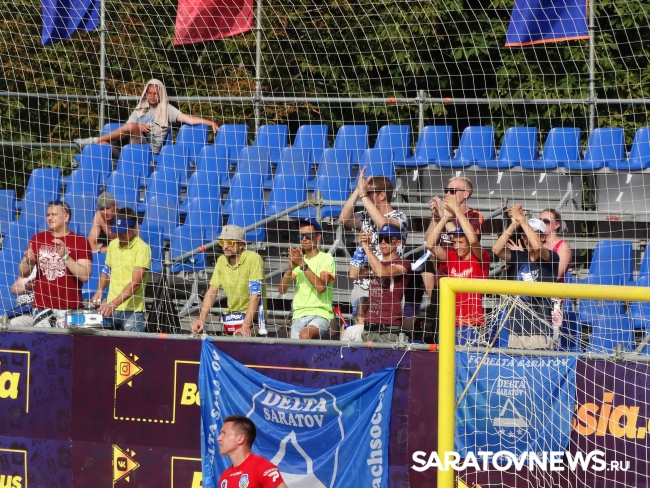 Пляжные футболисты «Дельты» на Театральной площади Саратова победили «ЭЛМОНТ» (Королев, Московская область) со счетом 9:5.