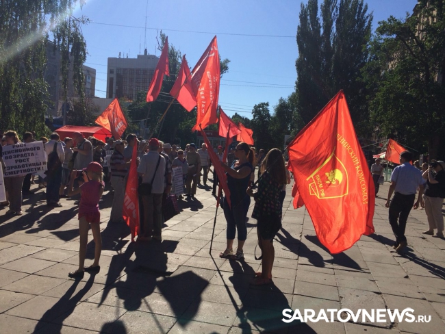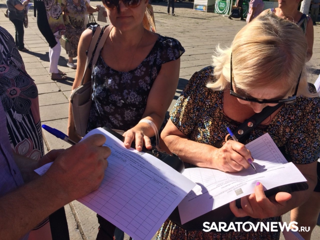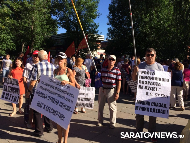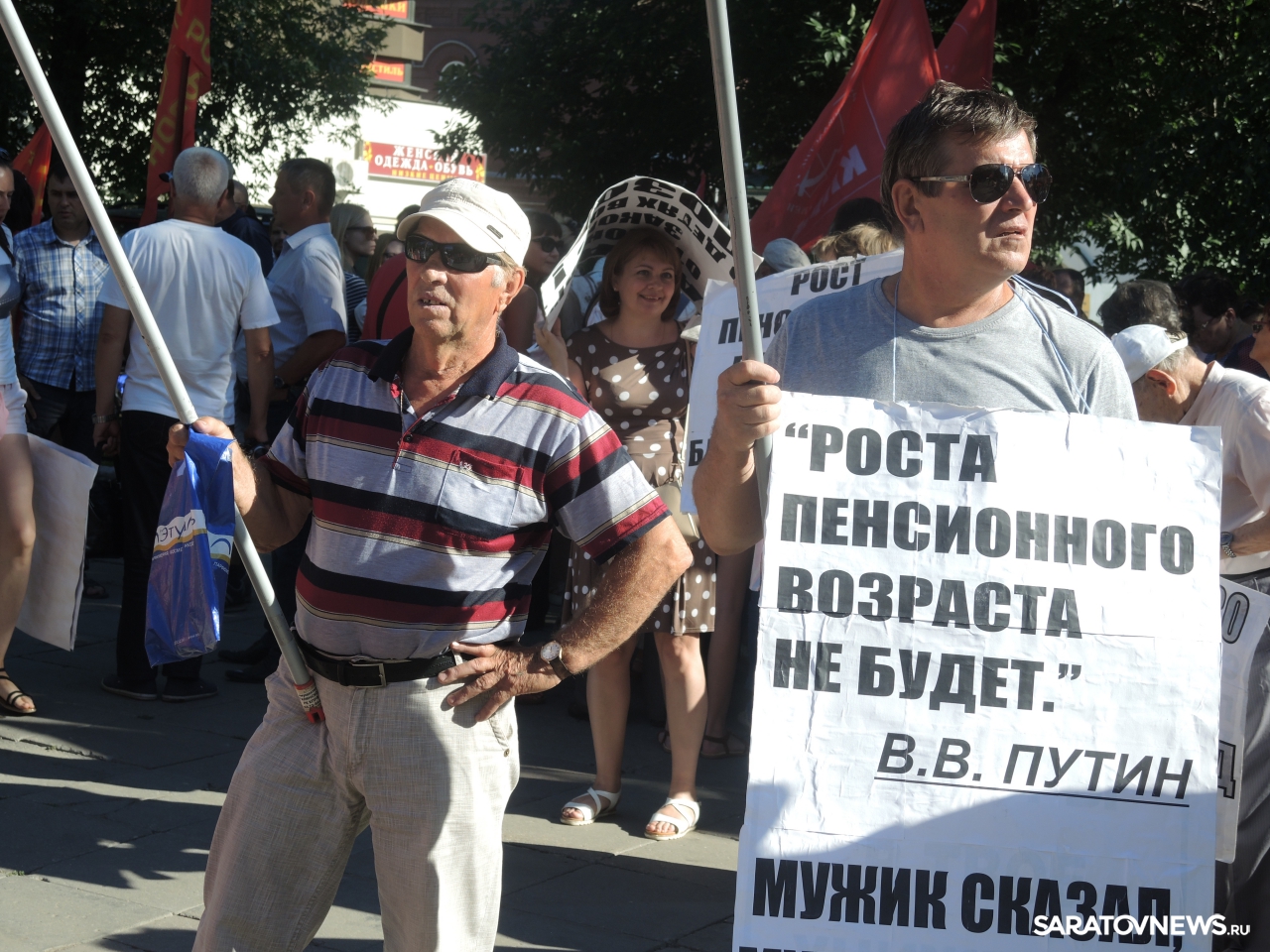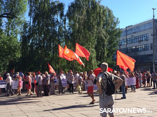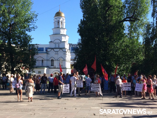 В Саратове у памятника Вавилову в Мирном переулке проходит митинг против пенсионной реформы, организованный партией КПРФ. Перед началом акции саратовцам, выступающим против повышения пенсионного возраста, предложили подписаться под обращением к президенту Владимиру Путину, в котором, в частности, есть требование об отставке премьер-министра Дмитрия Медведева.