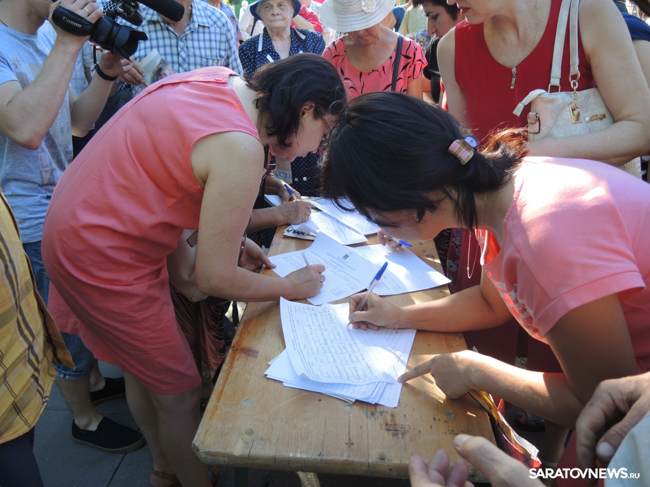 К митингу присоединяются простые саратовцы, проходящие мимо.