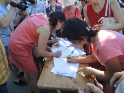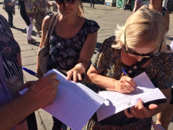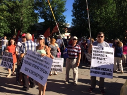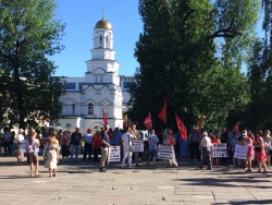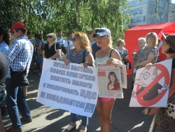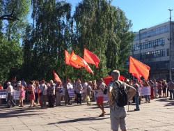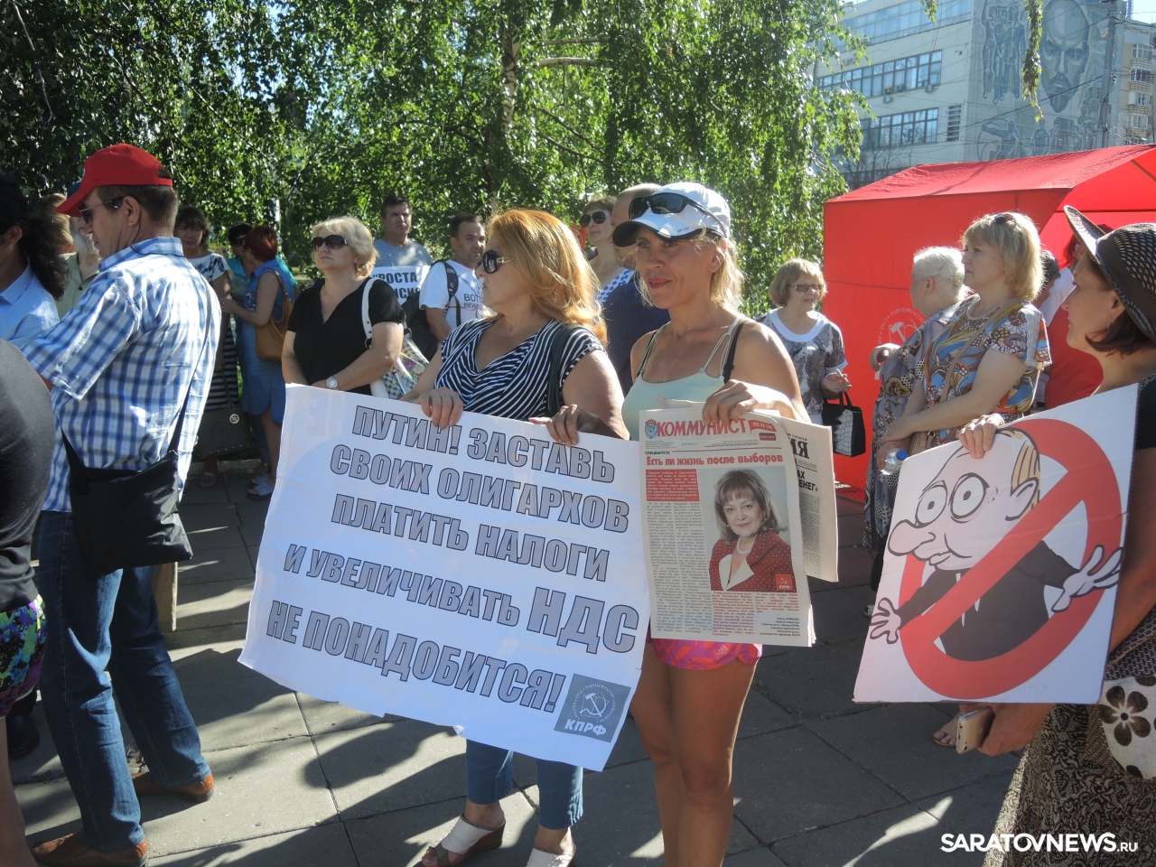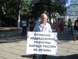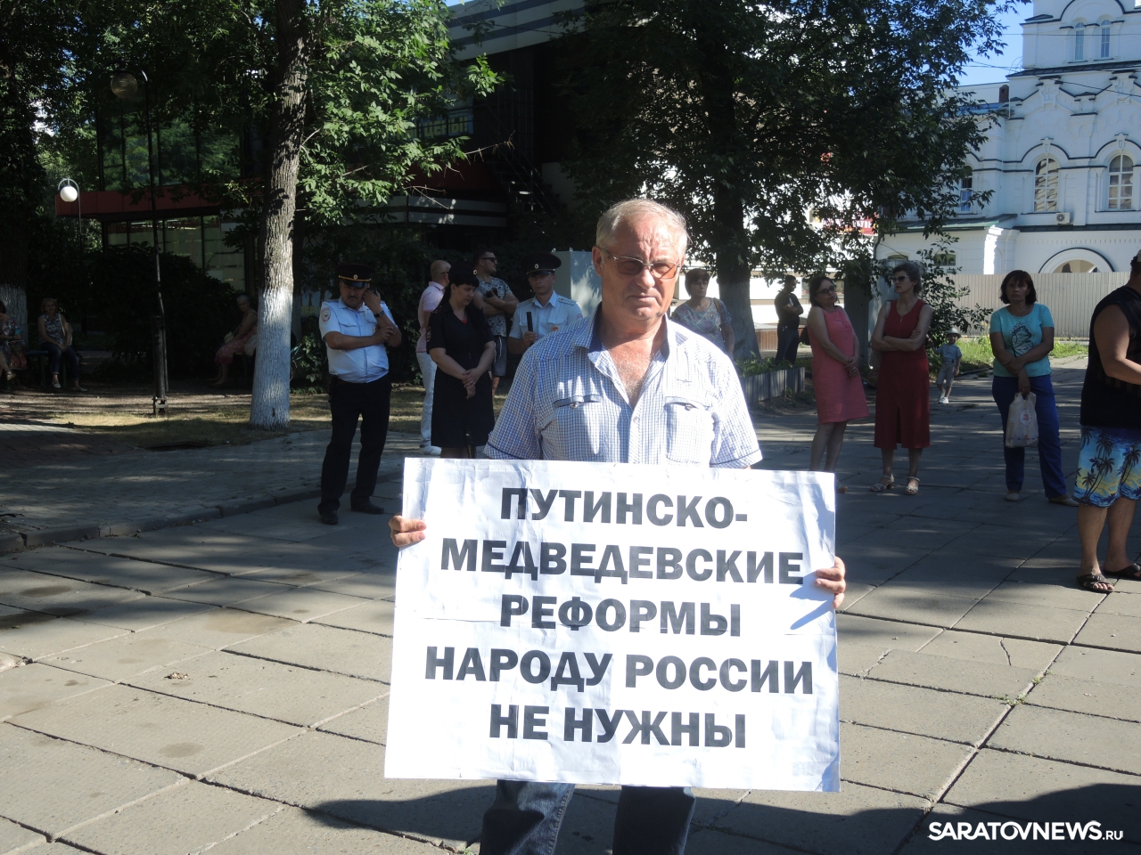 Несколько сотен горожан, в том числе сторонники КПРФ, пришли с плакатами: «За рост бензина и пенсионного возраста – Медведева в отставку!», «Министерство соцзащиты издевается над пенсионерами», «Если минздрав считает, что увеличение пенсионного возраста повысит продолжительность жизни, то полная отмена пенсии – шаг к бессмертию», «Похоже, Россия станет первой страной, в которой пенсионный возраст превысит продолжительность жизни».