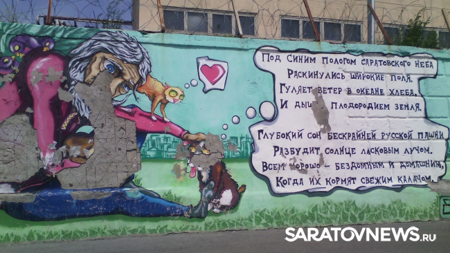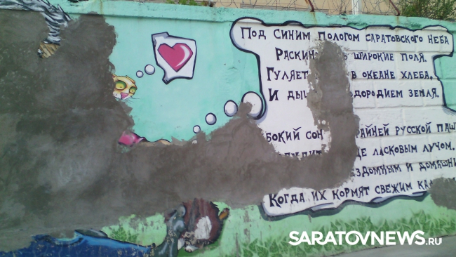 Все рисунки в темной штукатурке. Смотреть на это неприятно. Непонятно, когда полностью восстановят рисунки? Ведь набережная – это визитная карточка Саратова. Думаю, у туристов и гостей нашего города остается неприятное впечатление. Может, обратят на эту проблему местные чиновники – мэр города, губернатор, СМИ? Чтобы страницы нашей истории не стерлись, как наскальные рисунки, а остались в памяти потомков. Неужели не позволят творческим людям восстановить рисунки в первозданном виде? Чтобы они, как они раньше, украшали любимое место отдыха горожан", – возмущается горожанка.