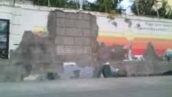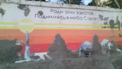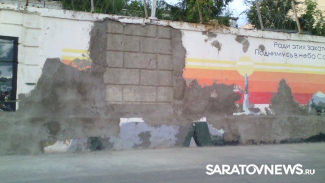 "Весной, гуляя по набережной, наблюдала неприятную картину. На стене, где нарисованы исторические события нашего Саратова, отвалилась штукатурка. Например, у Юрия Гагарина, упавший большой кусок, безобразно до злобной гримасы исказил его доброе улыбчивое лицо. Много жалоб саратовцев было по этому поводу. Спустя какое-то время картины полностью заштукатурили. Однако от этого стало только хуже, чем было.