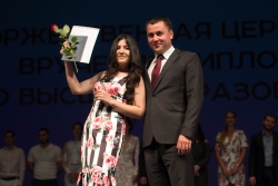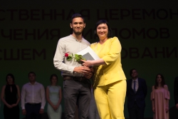 Завершилось торжественное вручение ответным словом выпускников, уже дипломированных специалистов, поблагодаривших профессорско-преподавательский состав и лично директора ССЭИ РЕУ им. Г.В. Плеханова, д.и.н., профессора Сергея Наумова за полученные фундаментальные знания, многогранный опыт, интересные лекции и семинары, положительные эмоции и впечатления. «Сергей Юрьевич, все эти годы вы были для нас отцом. Спасибо Вам за это!», – отметили выпускники.