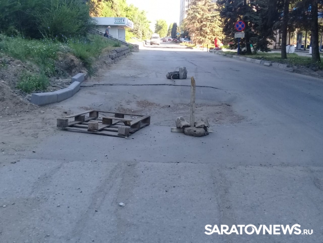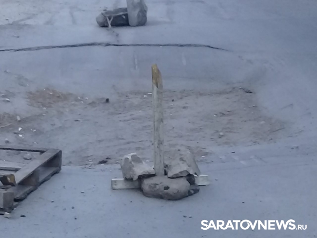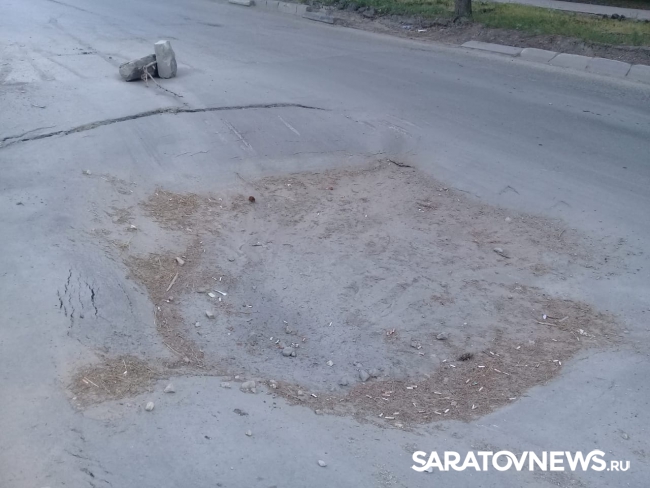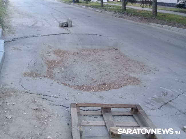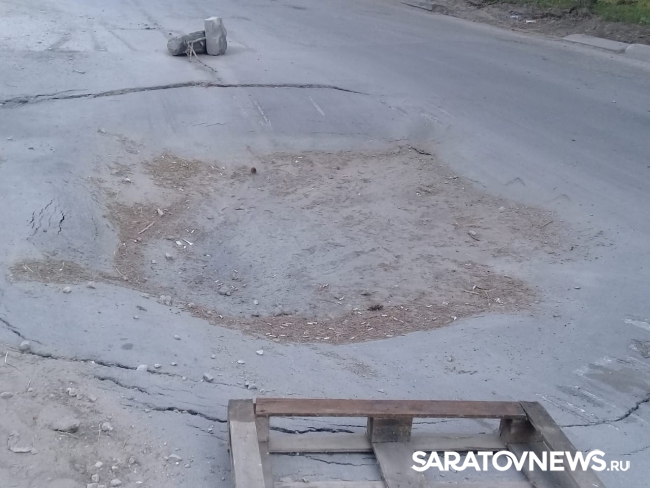 В Саратове на проезжей части дороги вдоль завода "Тантал" образовался провал. Яма находится по адресу: пр. 50 лет Октября, 110-А. Провал огорожен палками и камнями и представляет опасность для автомобилистов. Об этом сообщают читатели SaratovNews.