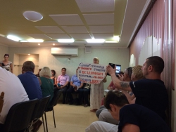 Председатель Общественной палаты воспринял её шаг с раздражением. Александр Ландо отметил, что делать такую акцию было ни к чему, поскольку как раз сейчас эта проблема будет обсуждаться цивилизованным способом, и пригласил женщину остаться.