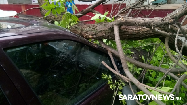Из-за наблюдающейся со вчерашнего дня непогоды, которая сопровождается шквалистым усилением ветра, в Саратове рухнуло очередное дерево. Об этом сообщает владелец пострадавшей машины в группе "Саратов онлайн" социальной сети "ВКонтакте".
