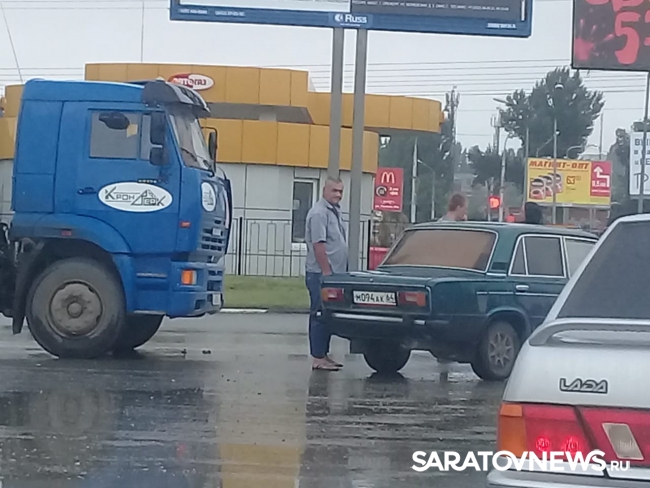 Въезд в Саратов со стороны Ленинского района затруднен из-за пробки. На кольце проспекта Строителей столкнулись грузовик, принадлежащий фирме "Кронверк", и ВАЗ-2107. В районе улицы Тархова образовался серьёзный затор. Об этом сообщают читатели SaratovNews.