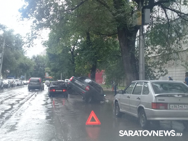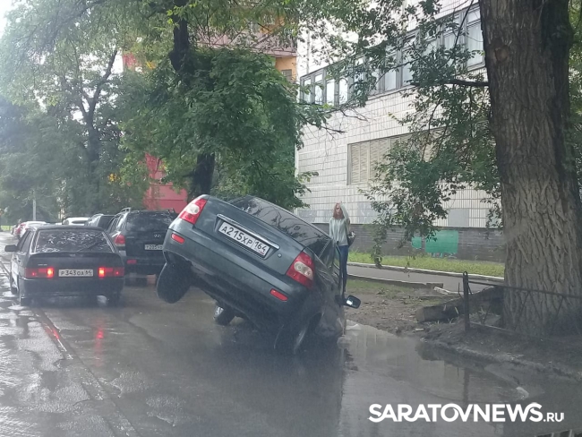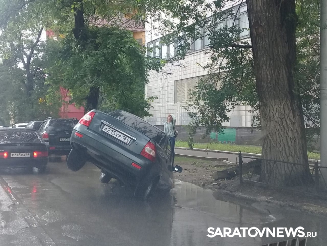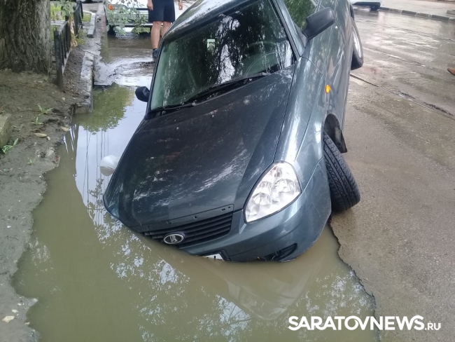 В центре Саратова в яму на проезжей части провалилась "Лада Приора". Об этом Saratovnews рассказали очевидцы дорожного инцидента.