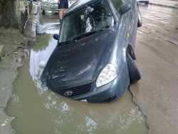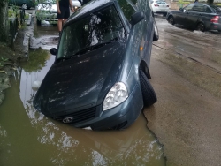 По словам свидетелей случившегося, яма, расположенная на Слонова, не доезжая до улицы Астраханской, была незаметна, поскольку она наполнилась дождевой водой и стала настоящей ловушкой для автомобилистов. Отечественная легковушка провалилась в нее правой передней частью.