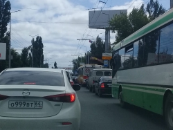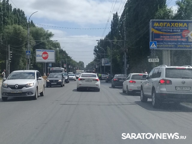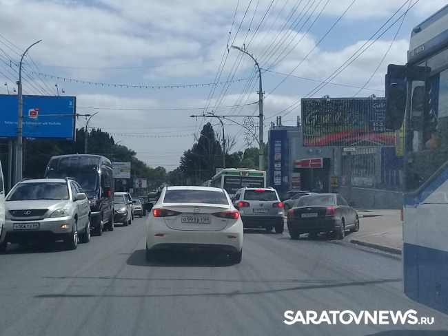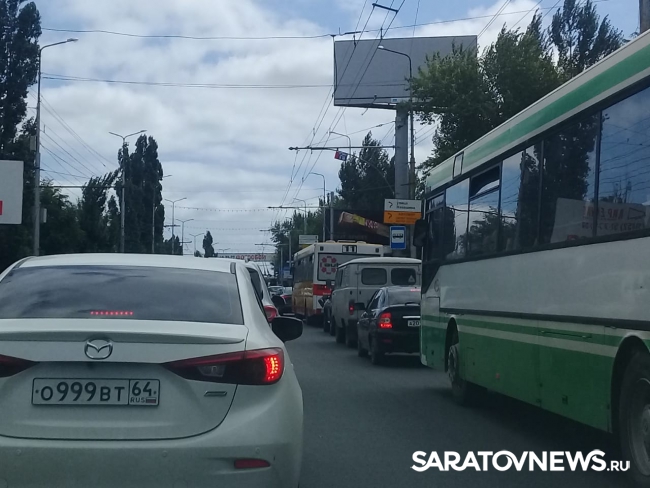 В Саратове на проспекте 50 лет Октября образовалась пробка. Движение автомобилей в сторону центра города серьезно затруднено.