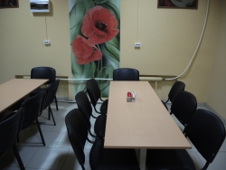 Журналистам показали бытовые помещения: раздевалки и столовую для операторов, а затем провели в центр обработки вызовов, где сегодня в смене трудятся пять сотрудников.