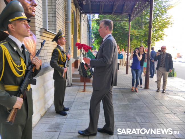 Его сопровождали сотрудник культурного отдела посольства Австралии в РФ Кемал Тарба, заместитель министра культуры Саратовской области Владимир Баркетов, представители министерства образования и министерства экономического развития Саратовской области.