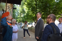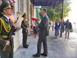 Прежде всего, Петер Теш почтил память Ю.А. Гагарина, возложив цветы к его скульптурному бюсту, установленному в нише главного корпуса колледжа. Затем он познакомился с экспозицией первого в мире музея первого космонавта планеты. Экскурсию для гостя провела сотрудник народного музея Ольга Дмитриева.