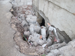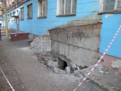 Во время недавнего ливня внешние воды подмыли фундамент нашего дома так, что обрушилась кирпичная кладка у входа в подвал. Как говорится, ящик Пандоры открылся – и мы увидели, что уровень воды в подвале (до этого он все время был закрыт на замках) почти в уровень с асфальтом, где мы ходим. В подъезде от влаги в стене образовалась огромная трещина, которая увеличивается все больше и больше. В квартирах жильцов стены тоже дают трещины. Мы боимся, что в любой момент дом рухнет, как этот подвальный вход. Это просто бесчеловечно», - пишут жители с улицы Менделеева.