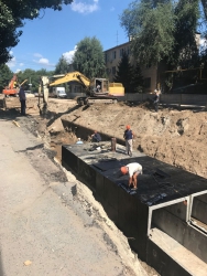 В этом году началась перекладка по ул. Авиационная, где ведется замена трубопровода диаметром 1200 мм. Трубопровод, протяженностью 460 м между ул. Гомельская и ул. Черниговская будет заменен на новый в ППУ-изоляции. Подрядная организация уже вскрыла канал теплотрассы, демонтировала старый трубопровод, ведется расчистка канала и подготовка к укладке нового трубопровода.