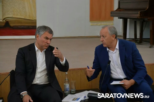 В субботу в Саратовской областной универсальной научной библиотеке состоялась встреча Председателя Государственной Думы РФ Вячеслава Володина и Губернатора Саратовской области с Валерия Радаева с участниками долевого строительства.