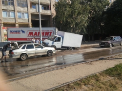Сообщается, что инцидент произошел у дома №77 по улице Огородной. Грузовик угодил в яму задней частью.