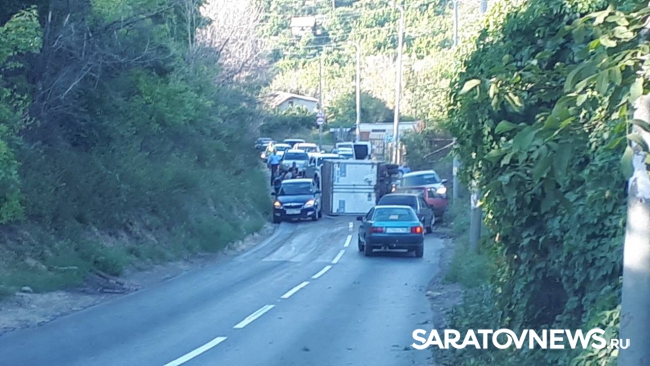 В Волжском районе Саратова произошло серьезное ДТП. По дороге из Юбилейного поселка в Затон упала на бок белая грузовая "ГАЗель". Лежащий автомобиль перекрыл обе полосы движения. Транспорт, двигающийся по Большой Сеченской улице, вынужден разворачиваться.