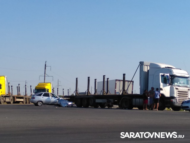 На въезде в Балаково Саратовской области произошло ДТП. ВАЗ-2110 врезался в пустую фуру "Scania". На фото, которые прислали читатели SaratovNews, видно, что два водителя обсуждают случившееся. Очевидно, пострадавших нет, делает вывод автор фото.