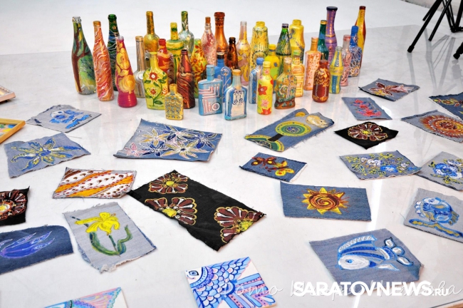 В экспозицию, представленную в фотостудии «9 облако», вошли 25 живописных работ и два экологических проекта – расписные бутылки и авторские сумки.