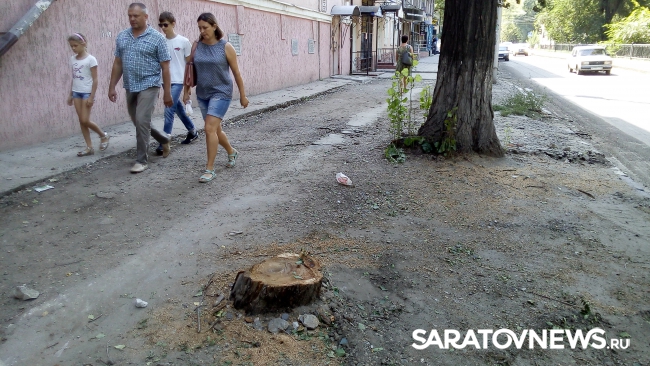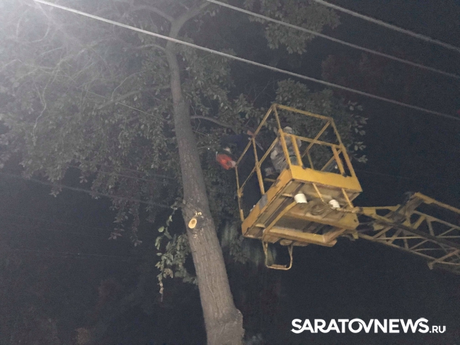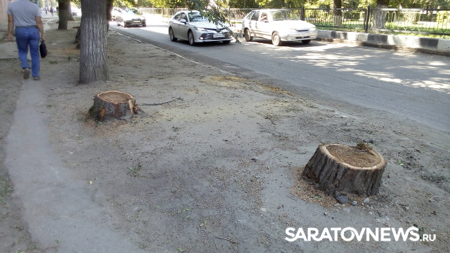 Как пояснила бригада МУП «Саргорсвет», разрешение включает уничтожение деревьев вдоль жилого дома №156А, гостиницы "Динамо" и стены СИЗО №1 по ул. Асстраханской. Однако после сноса деревьев возле жилого дома бригада свернула работы.