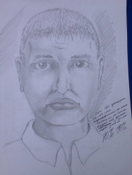 К портрету составлен текст примерных примет сексуального маньяка. «Рост 170 сантиметров, 45-47 лет. Нарисовано со слов 11-летнего ребенка. Видел на протяжении 15-20 минут днем. 80%-90%», - написано от руки рядом с портретом.