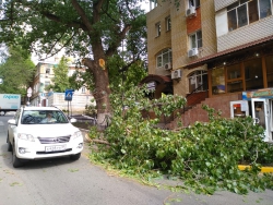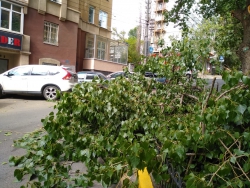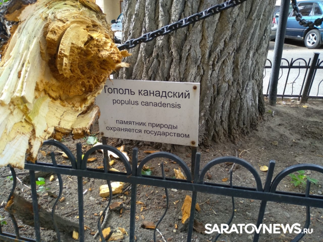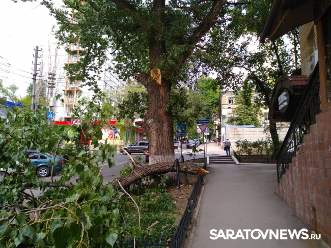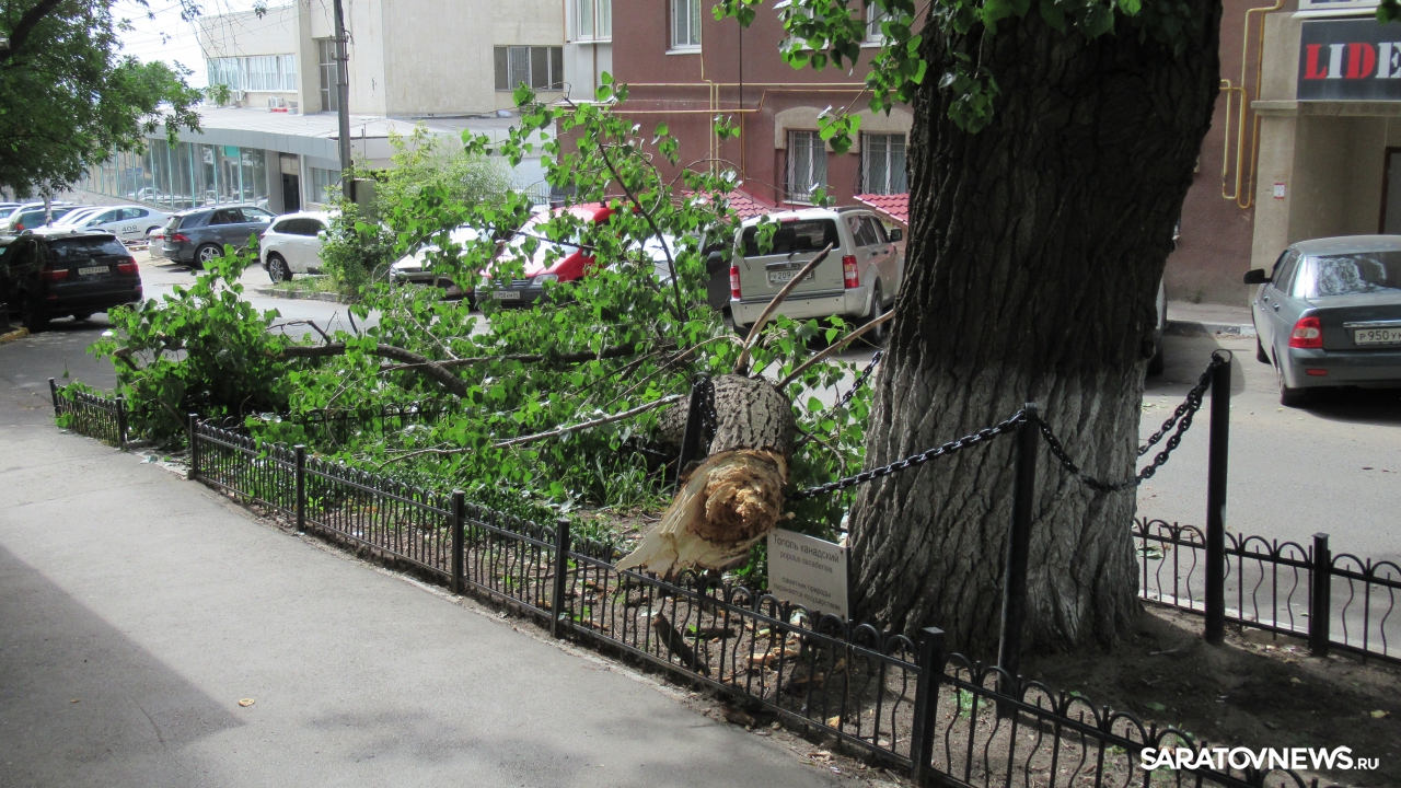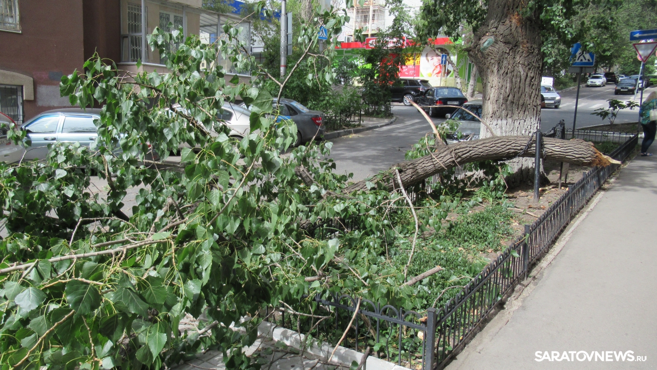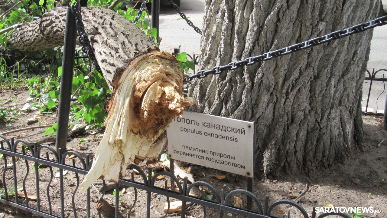В Волжском районе Саратова поврежден памятник природы. На перекрестке улиц Некрасова и Мичурина отломилась крупная ветка канадского тополя. Она перекрыла полосу движения и мешает проезду транспорта.