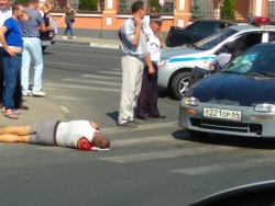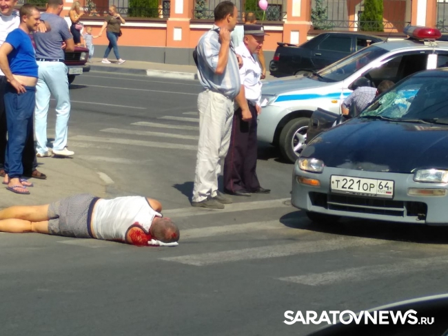 В Волжском районе Саратова произошло ДТП с участием пешехода. На Музейной площади иномарка сбила мужчину. Авария произошла на пешеходном переходе. На место уже прибыли сотрудники ГИБДД. Пострадавшему мужчине положили под голову одежду. Он жив, но трогать его до приезда "скорой помощи" прохожие не решаются.