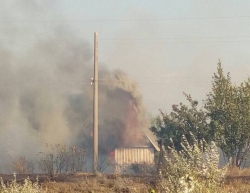 Как сообщают очевидцы, горят трава, дома и постройки.