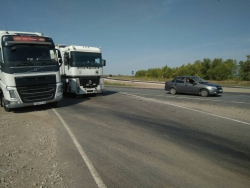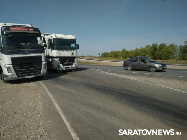 В Заводском районе Саратова фура "догнала" автомобиль "Волга". Как сообщают очевидцы, авария произошла неподалеку от памятника водителям.