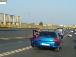 Владельцы автомобилей, перегородивших полосу движения на Усть-Курдюмской, выясняют отношения в ожидании наряда ГИБДД.