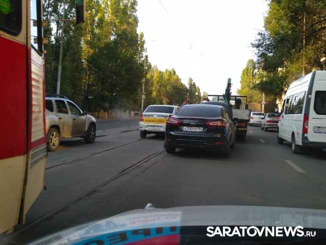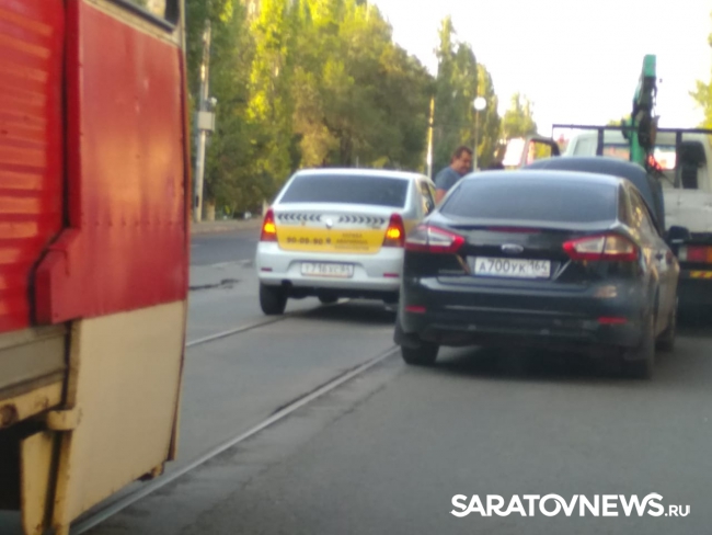 В Саратове встали трамваи маршрута №11. На улице Танкистов в районе персечения с Безымянной стоят без движения уже пять вагонов. Причиной их остановки стала поломка легковой машины. Прямо на трамвайных путях заглох "Ford Mondeo".