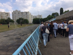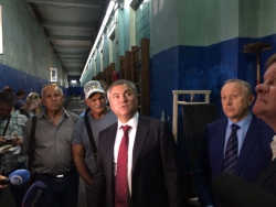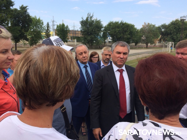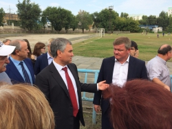 На спортплощадке у школы №39 к спикеру подошёл местный житель, который рассказал о бедственном положении стадиона, который не только разрушен, но и представляет опасность для детей, которые на нем занимаются. Вячеслав Володин принял решение съездить на стадион и осмотреть его.