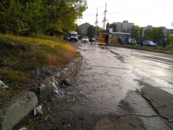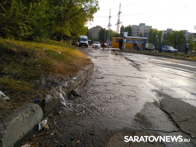 В Ленинском районе Саратова произошла очередная коммунальная авария. Вода льется около перекрестка улиц Лебедева-Кумача и Тархова. Особое неудобство для пешеходов заключается в том, что вода заливает подходы к конечной остановке маршрута №73.