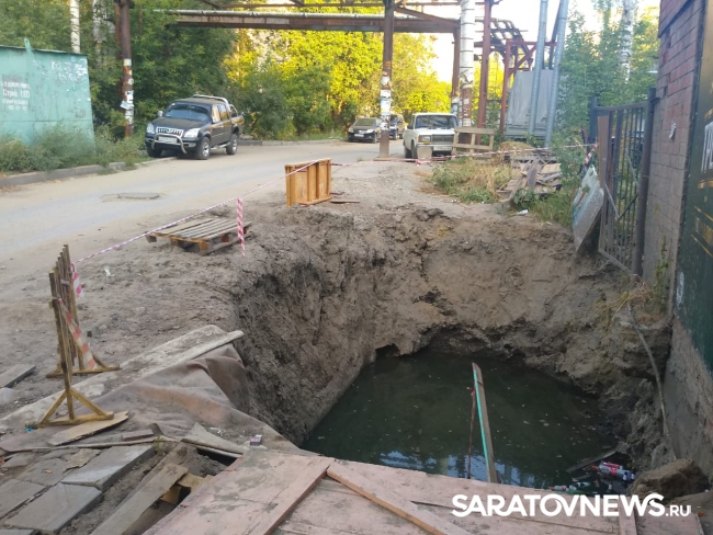 В Саратове жители улицы Луговой (района Стрелки) жалуются на коммунальные службы. Больше месяца назад у дома № 10/20А был вырыт котлован. Яма стала заполняться водой и мусором, но ответственные службы, похоже, просто забыли о ее существовании. Дело осложняется тем, что яма вырыта у дороги, практически ничем не огорожена и не освещается в ночное время.